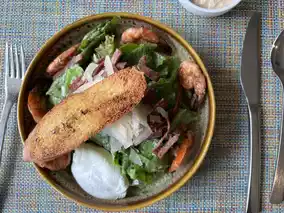 I had prawns added to my salad, and they too were charcoal-grilled — a thoughtful touch that added a whole new dimension to a classic Caesar. The portion was generous with several perfectly grilled prawns that brought a lovely smoky sweetness to the dish.