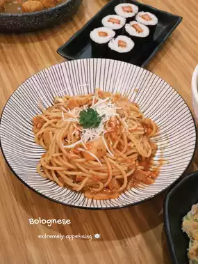 We tried the Lava Cheese Sushi (gone in seconds!), Okonomiyaki, Oluak, Mala Ramen, Ayam Geprek Rice Bowl, Japanese Curry, Bolognese, Chicken Mentai Rice Bowl, and Hamu Maki. Every dish was thoughtfully prepared, but my favourites were definitely the Okonomiyaki and Oluak — generous with fillings and packed with flavour.