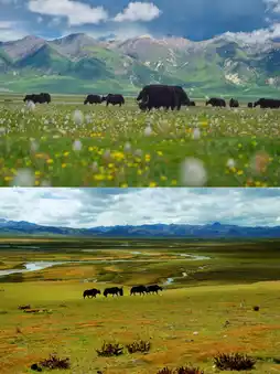 Yaks, symbols of the plateau, roam freely across the grassland. Get up close to these majestic creatures and capture their grandeur.
