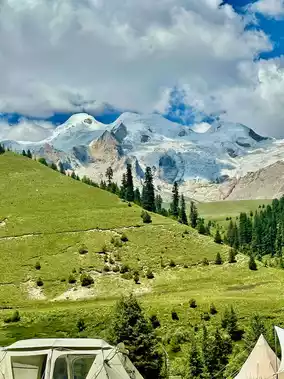 6⃣️ Hangda Camp: A prime viewpoint facing Genie Sacred Mountain. Summer brings floral carpets; autumn paints the forests. The karst landscapes of Daodao Valley overlapping with snow peaks create dreamy compositions.