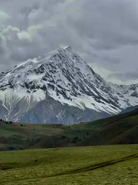 2⃣️ Tiejianshan Pass: The starting point of the Genie South Line, where black volcanic rocks starkly contrast with snowy peaks. Glacial remnants lend an otherworldly, sci-fi vibe.