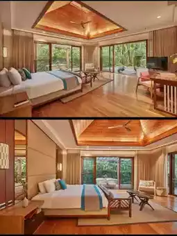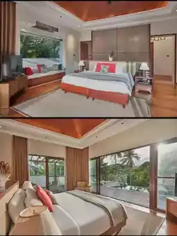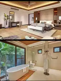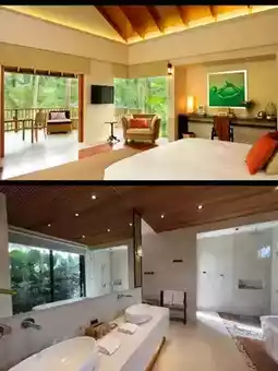 The rooms and villas blend traditional and modern styles, surrounded by greenery. Some rooms even feature private balconies, gardens, or patios. Each room is equipped with air conditioning, a minibar, a private bathroom, and free Wi-Fi, ensuring comfort and convenience alongside the natural beauty.