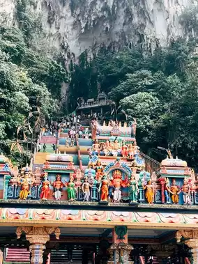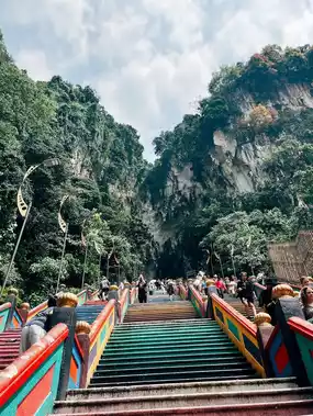 The Indian temple built on 272 steps is a famous tourist attraction in Kuala Lumpur. The temple in the cave feels very fresh, but it is really a test to walk through these 272 steps because the steepness of this staircase is different from ordinary ones. The stairs are different. It feels like if you don't step on it properly, you will really fall down.