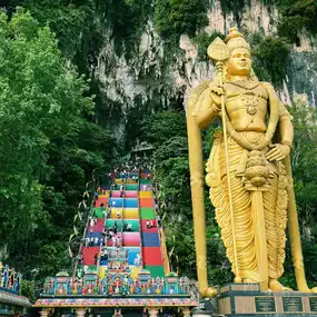⭐⭐⭐ Featuring: A massive Golden Murugan Statue standing 42.7m and the 272 steps Rainbow Staircase.