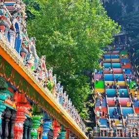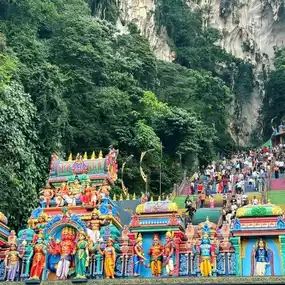 #Get a discount without relying on luck Visit Batu Caves, an important religious site of Hinduism located in Selangor, north of Kuala Lumpur, Malaysia. The highlight here is the 272 multi-colored stairs. Going up is not so bad, but going down is shaky. And there is the highest statue of Lord Murugan in the world. This cave is a limestone cave that is millions of years old. It is a sacred place where Hindus travel to worship and is a highlight of visiting Malaysia. Along the stairs, you will see monkeys sitting and asking for food. They are cute, but don't touch them.
