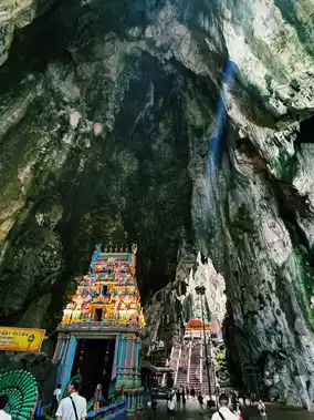 Beautiful limestone caves spread out inside the cave, and Hindu temples are scattered around.