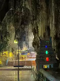 Batu Caves is a majestic limestone hill located just north of Kuala Lumpur, Malaysia, famed for its stunning series of caves and cave temples. Dominated by a colossal golden statue of Lord Murugan and reached via a vibrant, rainbow-colored staircase of 272 steps, it’s a spiritual and visual wonder. Inside, you’ll find Hindu shrines nestled in cathedral-like chambers teeming with natural light, echoing prayers, and curious long-tailed macaques.