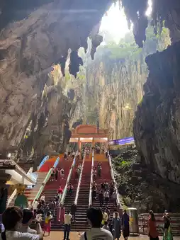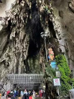 I visited the mystical sacred site "Batu Caves" located on the outskirts of Kuala Lumpur! The entrance is stunning, greeted by a 42.7-meter-tall golden statue of Lord Murugan. The 272 colorful steps to climb are steeper than they look, and with each step, my heartbeat quickened, giving me a great sense of accomplishment!