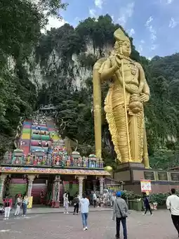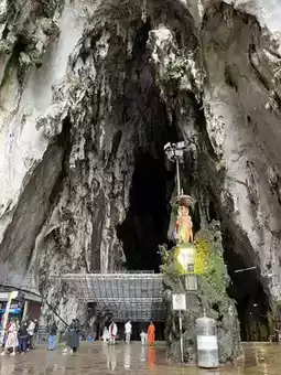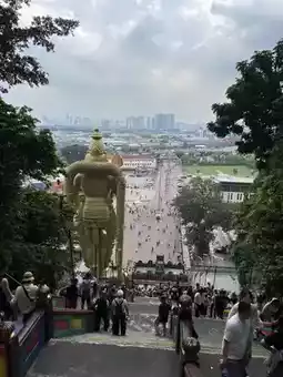 It is very easy to get there. Take the KTM Komuter train and get off at Batu Caves station. You will arrive right away without having to transfer anything. When you exit the station, you will see a large golden statue of Lord Murugan standing in front of you. It is very tall and you will definitely get it in your picture.