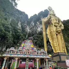 📝 : Batu Caves is a must-visit destination in Malaysia. The towering golden statue at the entrance is impressive, and climbing the colourful stairs to the main cave is an impressive experience. Inside the cave, you will find magnificent Hindu shrines and temples. Batu Caves is a place full of culture and visual beauty. It is worth a visit! It is a perfect photo spot!