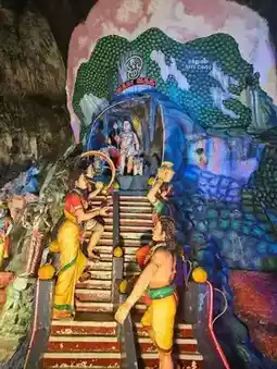 • Ramayana Cave (to the left of the main staircase): A colorful, less crowded cave with glowing statues and murals that tell the story of the Ramayana epic.