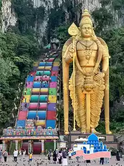 Just a short drive from Kuala Lumpur, Batu Caves is truly a sight to behold. The moment you arrive, the towering golden statue of Lord Murugan greets you with such grandeur that you can’t help but stop and stare. Then comes the climb—272 colorful steps leading into majestic limestone caves. It’s a bit of a workout, but every step feels worth it once you reach the top and see the temple inside, glowing with devotion and history. The sound of chanting, the flutter of pigeons, and even the cheeky monkeys make the place feel alive. Batu Caves isn’t just a tourist spot—it’s a spiritual escape wrapped in adventure.