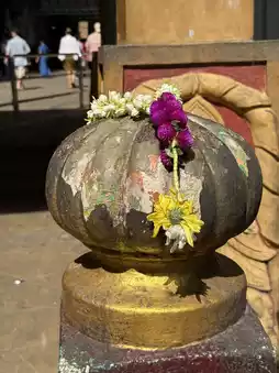 (First off, make sure to wear clothing that covers your knees and shoulders, and avoid flip-flops, as this is a religious site—a Hindu temple.)