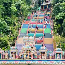 Next to Murugan is a colorfully painted staircase with 272 steps...
