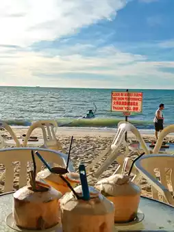 Arrive early to grab a beachfront seat, especially around sunset. You can reserve the seat earlier too. It can get busy during weekends and holidays—reservations are recommended.