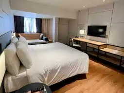The PARKROYAL Penang Resort offers a spacious layout and abundant facilities. The lobby opens directly to the pool, and stepping outside leads you to a stunning beach with a seamless blend of sea and sky. Although it's a bit farther from the city center, transportation is still convenient. The hotel faces the main road, with restaurants and shops to the right, and a night market, McDonald's, and Starbucks to the left, making it a very convenient location.