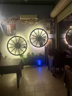 The ambience was great, warm lighting softly illuminates the space, with wagon wheels on the wall serving as eye-catching vintage décor 👍👍👍