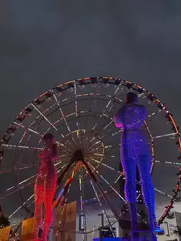 The giant Ferris wheel at Miracle Park, located right next to the statue, is a must-see! During the evening, the neon signs light up one by one, transforming the entire park into a magical experience. Even solo, riding the Ferris wheel felt effortless, and the view of Batumi's cityscape from above was truly spectacular.
