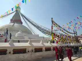 I really enjoyed visiting Boudhanath Stupa. It’s such a peaceful place with the big stupa in the middle and lots of colorful prayer flags flying around. I walked around it a few times, spinning the prayer wheels, and just soaking in the calm vibe.