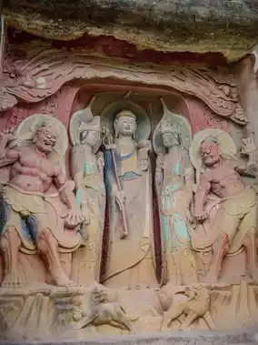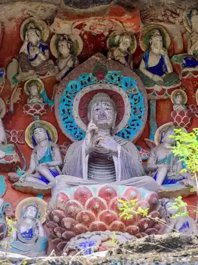 Known as the "Crown of Tang Dynasty Colored Sculptures in China", it is carved on a huge stone wall with more than 2,000 statues. The niches are staggered, and the Buddha statues are densely packed. It began to be carved in the Tang Dynasty, and the colors are well preserved, which is spectacular.