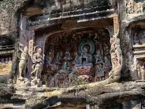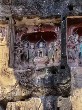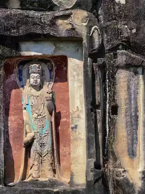A few caves are distributed in the mountain gate stone, cloud screen stone and Guanyin Rock at the north end of Shenxian Slope. A few caves were carved in the Sui Dynasty, and there were statues in the early Tang Dynasty. Most of the statues were in the middle and late Tang Dynasty, and some were excavated during the Republic of China.