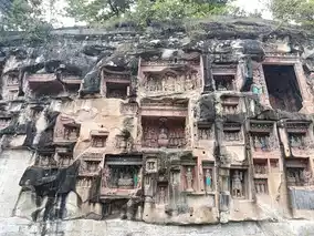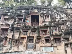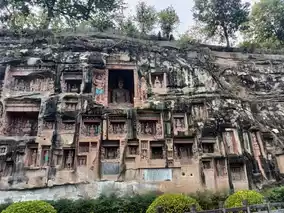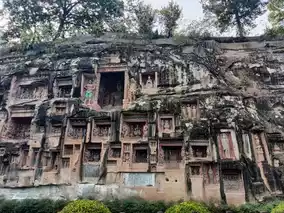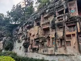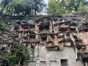 The Nan Kan Grottoes, also known as the Nan Kan Cliff Carvings, are located in the belly of Nan Kan Slope, about 1 km south of Bazhou District, Bazhong City, Sichuan Province. They are the largest and best-preserved grottoes in Bazhong and are excellent representatives of ancient grotto art and the crystallization of ancient Bazhou culture. The Nan Kan Grottoes were first carved in the Sui Dynasty and flourished in the Tang Dynasty. They have a history of more than 1,300 years. People used to call them Nan Kan Temple. In the third year of Qianyuan of Emperor Suzong of the Tang Dynasty, they were named Guangfu Temple. In 1988, they were announced by the State Council as a national key cultural relics protection unit. In 2001, the Shuining Temple Grottoes, the West Kan Grottoes, and the North Kan Grottoes in Bazhou District, Bazhong City were merged into the Nan Kan Grottoes, all of which were recognized by the State Council as the fifth batch of national key cultural relics protection units. Cultural relics protection unit. There are 176 niches and more than 2,700 statues in the Nan Kan Grottoes. The statues are mainly Buddhist, with generally strong bodies, full faces, rich clothes, various postures, chic and elegant expressions, and mostly use high relief carving techniques. The clothing patterns and tassels use smooth and brisk intaglio lines, and the knife skills are sophisticated. The Nan Kan Grottoes have rich content and elegant style, with distinctive artistic style and characteristics, and are the main physical historical materials for studying China's Sui and Tang cliff carvings.