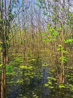 Scenic Boardwalk Trails: Wander along elevated wooden walkways through lush marshlands and forested swamps 🌿