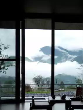 Enjoy a pot of tea, and watch the green mountains and clouds