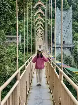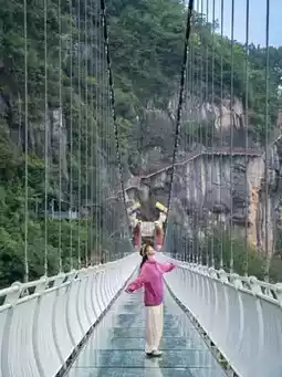 Stand in the middle of the bridge, have a friend shoot from the bridgehead, with the canyon, blue sky, and white clouds… the visual impact is amazing