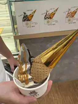 The crispy, golden-wrapped cone adds a touch of ritual to this dessert. In your hand, it feels more like a small work of art than just ice cream.