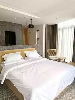 Stayed with friends in a projection king room, the giant screen projection to watch the Olympics at night was so cool!! The room is spacious, tidy, and clean, the stay experience is maxed out ~ staying here is a five-minute walk to the beach, and a seven or eight-minute walk to Qiaogang Food Street, travel is just too convenient!!
