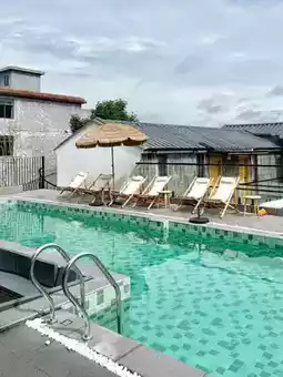 The exterior of the homestay is elegant and unique, and the facilities are very complete 👉 open-air sky 🏊 pool, courtyard 🏡 garden, restaurant, laundry room, leisure balcony, smart home all equipped, with an elevator to carry luggage is also very convenient 🛗 ~ There is also a free 🆓 private parking lot, the thoughtfulness is so touching!! 🥰
