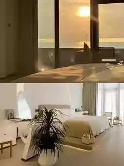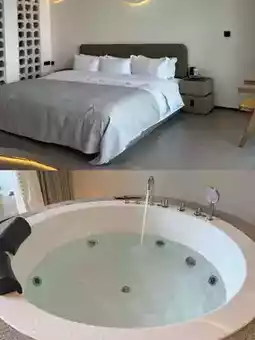 The room is super romantic 🌹, you can see the 180° ocean view from the bed 🌅Every corner is like a photo 📸, and there are small gifts, super intimate