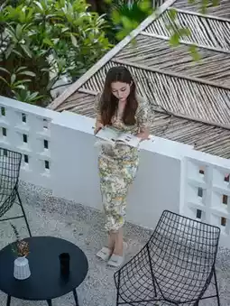 The entire hotel is romantic and French. It's very photogenic. The balcony on the second floor is especially beautiful for photos, and there are many leisurely sun umbrellas.