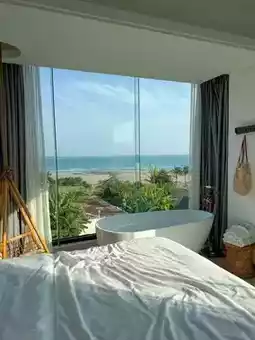 I sat on the swing by the large floor-to-ceiling window and gazed at the endless sea.