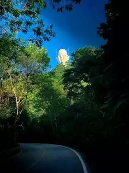 Follow the mountain path, shaded by lush trees, and breathe in the refreshing air. Along the way, you'll encounter unique, modern meteorological observation buildings. Ascend to the summit for panoramic views, where an ancient pagoda stands serenely amidst the mountains, creating a stunning tableau with the bustling harbor and vast ocean in the distance.