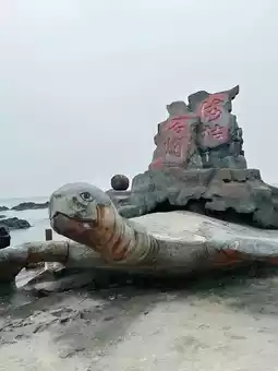 A red and white lighthouse stands proudly on the rocks by the sea, guiding ships to and fro. Lifelike sea turtle sculptures seem to whisper tales of the ocean. My journey to Guantouling immersed me in the beauty of the mountains and sea, providing relaxation and rejuvenation for my soul.