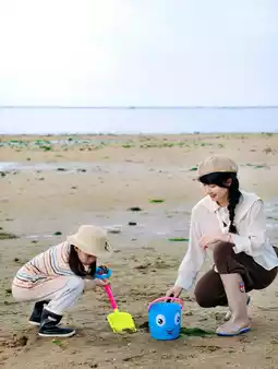 🔹Beachcombing: Aim at the tide table, bring small tools, and you can go to the beach under the boardwalk to dig~ There are many shells and small crabs here, and the children have a great time~
