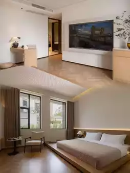 The building facade retains the original European-style framework of the villa area, yet incorporates oriental Zen aesthetics through raw concrete and natural wood elements. Sunlight filters through perforated brick walls, painting patterns in the corridor, while rough-textured pottery jars whisper "the poetry of imperfection."