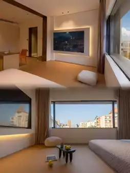The sea-view deluxe room features 270° floor-to-ceiling windows framing Silver Beach's waves as living oil paintings. A stargazing skylight adjoins the bathtub, complemented by a custom-made Slumberland mattress and hand-dyed bedding. A tatami tea room comes with parent-child craft kits.