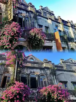 2️⃣ Beihai Old Street Milk Shop Corner: Vintage yellow wall + bougainvillea
