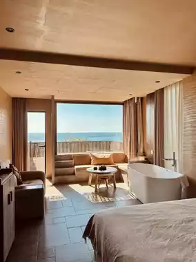 🛏️ With a total of 19 rooms, each offers a unique view of the sea. No matter which room you stay in, you can open the window to a different seascape. The sunsets are especially stunning, with the orange sea right before your eyes.