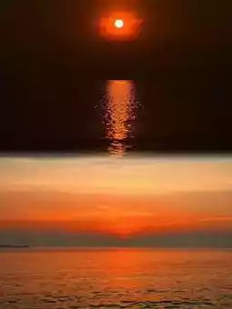 Watch the clouds stretch freely across the sky, like a spilled palette of orange paint🎨, wrapping the entire sea in a warm embrace. Every wave sparkles with fragments of gold✨, as if the sea secretly hides stars that quietly scatter on the surface at sunset.