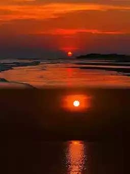 As the sunset dyes the horizon into orange-red silk🌅, the waves become gentle piano keys, playing a lyrical melody on the beach🎶. Fishing boats are anchors of time🚢, coconut groves are frames of dreams🌴, and people's silhouettes at dusk become lively footnotes in poetry✨.