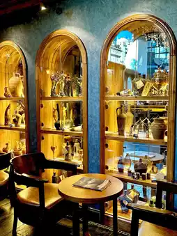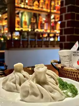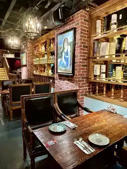 This restaurant offers Georgias cuisine (salads, BBQ, dumplings, sweets etc). They have classic and special drinks. The atmosphere is really beautiful, many authentic things from Georgia. There is a terrace, nice too.