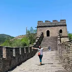 As we arrived at the entrance of the Great Wall Mutianyu section, anticipation filled the air. We eagerly boarded a cable chair, we hopped on a cable chair that whisked us up the majestic mountains, revealing a breathtaking panorama. The view from the walls was nothing short of extraordinary, with the beautiful mountains stretching as far as the eye could see. The intricate architecture of the wall fascinated us, a testament to the ancient craftsmanship. To descend the mountain, we embarked on an exhilarating toboggan ride, gliding down on a chair slide that felt like a thrilling rollercoaster adventure. After reaching the bottom, we made our way back to the hotel, savoring a delicious Subway meal that perfectly complemented the unforgettable experience of exploring the Great Wall of China.