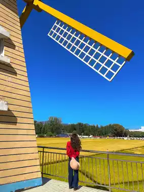 I particularly like the blue windmill. It looks really good next to the rice field. No matter if it is against the blue background or on the second floor of the windmill and under the windmill blades, any shot is beautiful.
