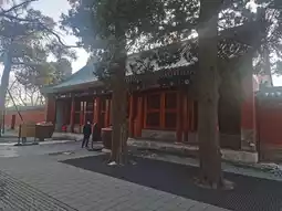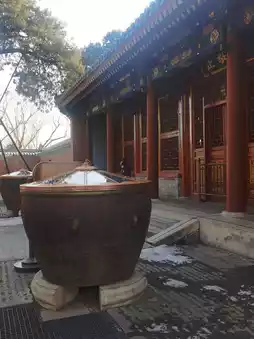 The Fasting Palace is located inside the West Heavenly Gate, where the emperor would bathe and fast before performing sacrificial rites. Facing east, the palace covers an area of about 40,000 square meters, surrounded by a moat. It houses a total of over 60 rooms. The main hall is five bays wide and is known as the Beamless Hall because it contains no beams or wooden columns. There are two stone pavilions on the platform of the main hall, the left one is the Fasting Bronze Man Pavilion (allegedly cast in imitation of Tang Dynasty's Wei Zheng), and the right one is the Pavilion of Time Tablets. Behind the main hall are five sleeping quarters, and in the northeast corner stands a bell and drum tower, which houses the 'Great Harmony Bell' cast during the Ming Dynasty's Yongle era.