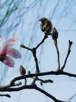 πΈ When photographing the Magnolia Bird, π finding the right angle is most important, and the flower buds presenting a bird-like posture from the side make for a better shot.