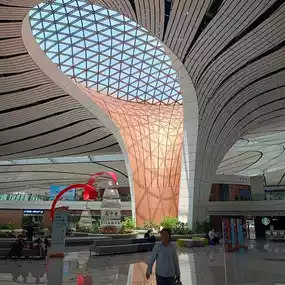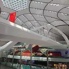 北京大兴国际机场是一个新机场,所以它很漂亮而且很大。 国际廉价航空航班不多,所以数量不多,但显然是世界上最大的。 Beijing Daxing International Airport is a new airport, so it is beautiful and huge. There are not many international flights because there are no low-cost carriers, but it is said to be the largest in the world.